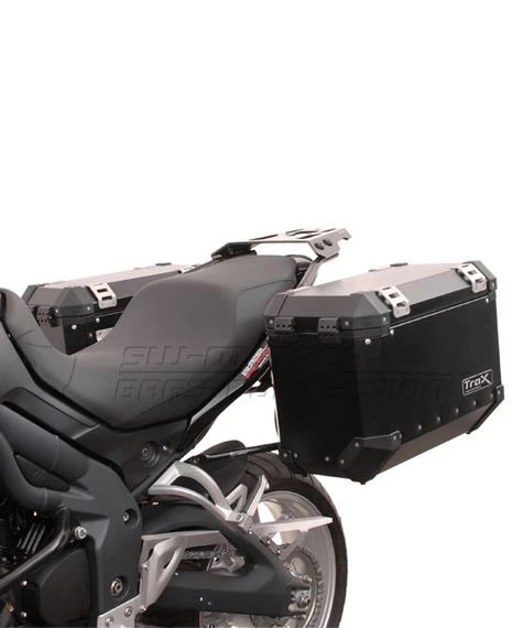- Kofferset bestaande uit Quick-Lock evo zijdrager, linker Trax koffer van 45 liter, rechter Trax koffer van 37 liter en 4 slotjes.